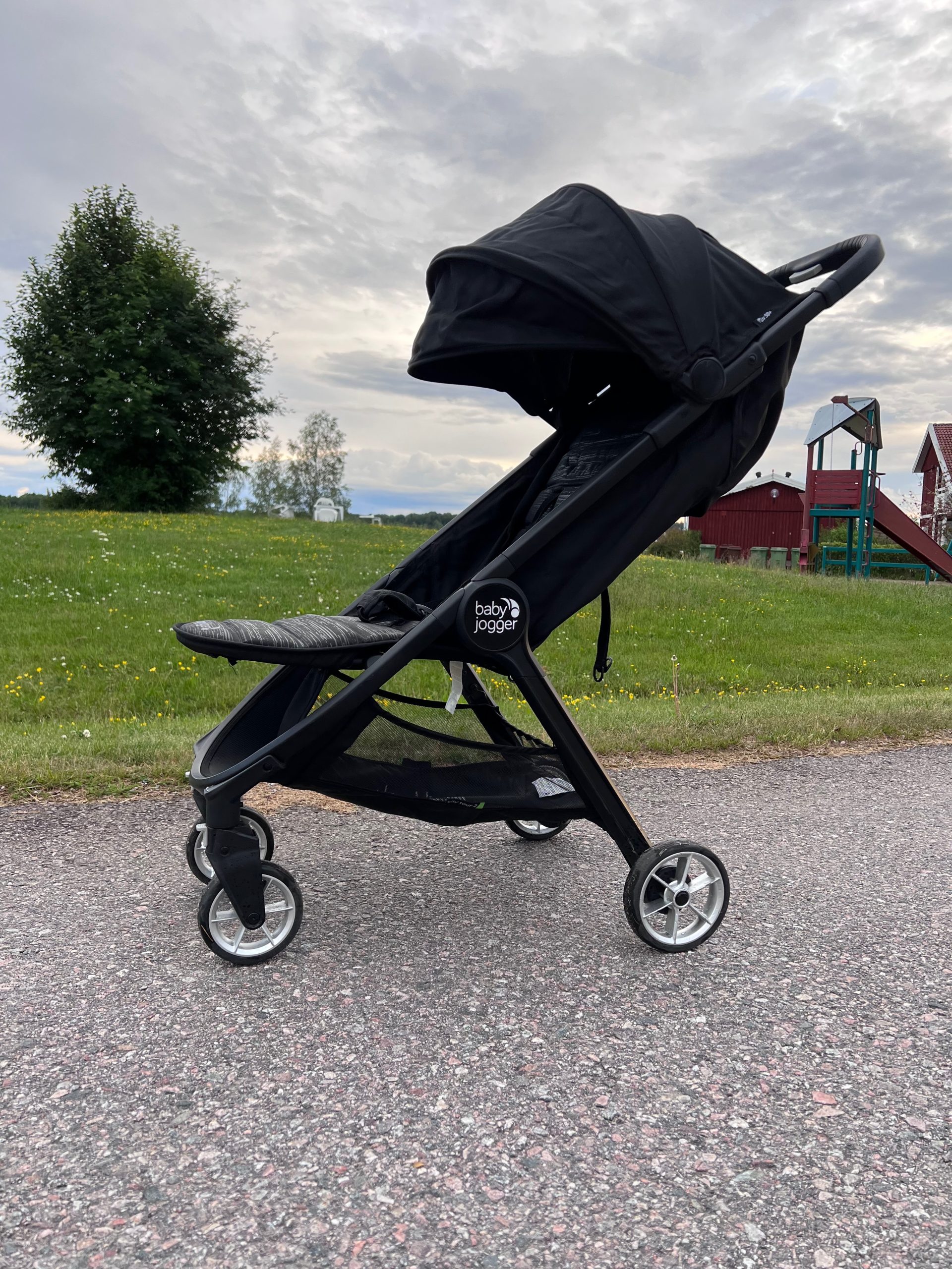 Vagnen har inbyggt fotstöd och plant liggläge när barnet ska sova. Perfekt resevagn eller att ha i bilen då den blir väldigt liten ihopfälld.